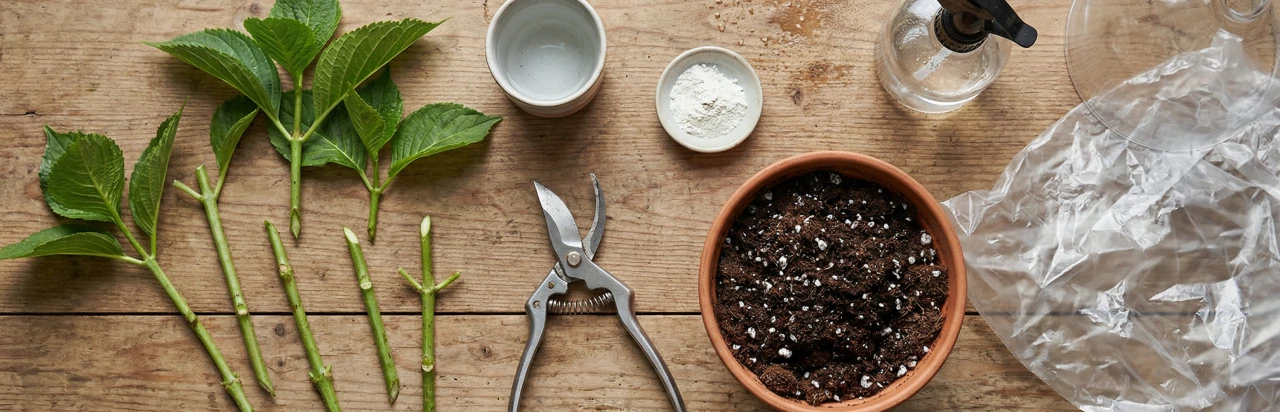Размножить гортензию черенками в домашних условиях может каждый садовод — метод дает приживаемость 70–90% при правильной технологии. Черенкование позволяет получить несколько саженцев с одного растения и сохранить сортовые признаки материнского куста.