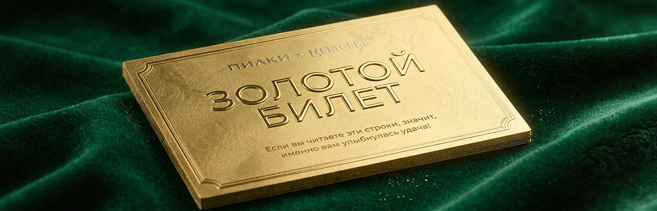 В 5 подарочных сертификатах спрятан тот самый Золотой билет. Если вам повезёт его найти, вы получите бесплатный букет с доставкой от компании «Цветовик».