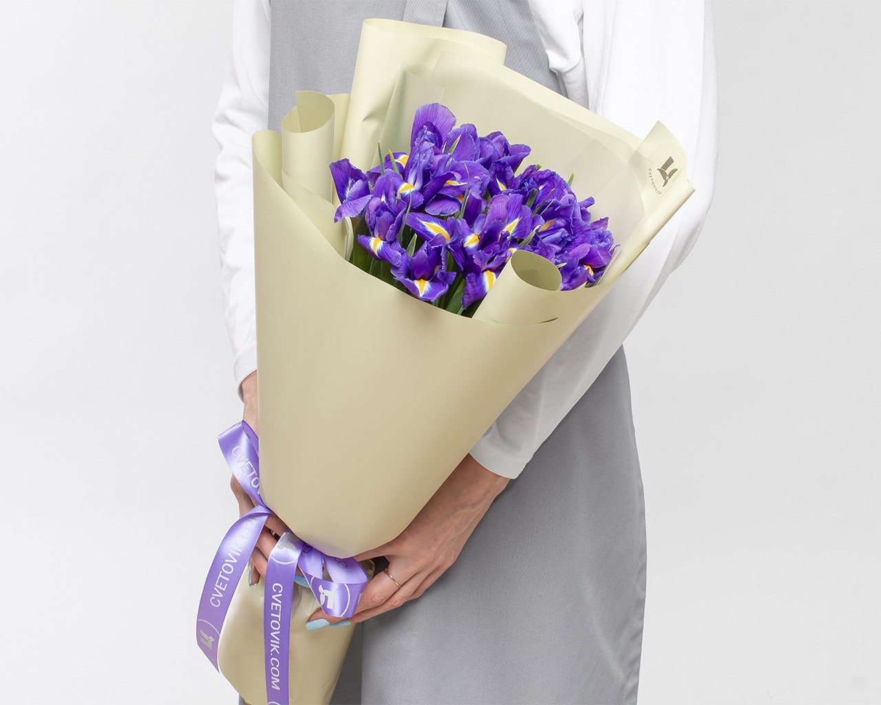 Сеть цветочных магазинов Цветовик предлагает вам букет цветов из ирисов в упаковке 15 шт по цене 4526 рублей. Покупатели оценивают этот товар на 4.7, что свидетельствует о его качестве и популярности.