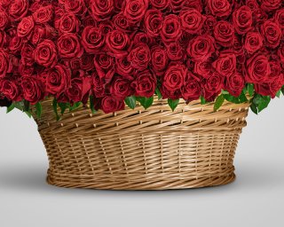 Состав: роза Эквадор 60-70 см 1001 шт., корзина 1шт., оазис 25 шт., пленка 10 шт.