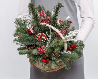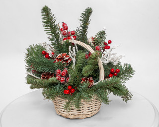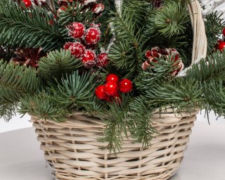 Состав: нобилис, новогодний декор, корзина, оазис.