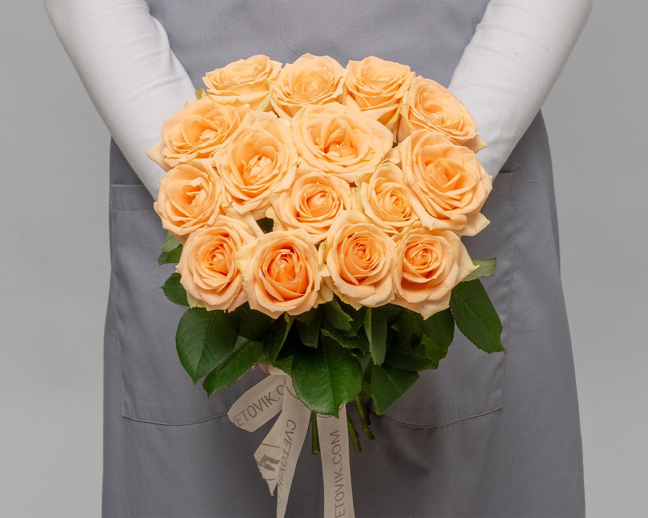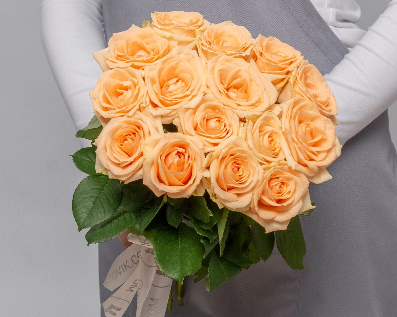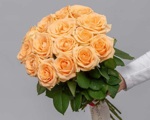 Букет из 15 кремовых роз 35-40 см (Россия) под атласную ленту