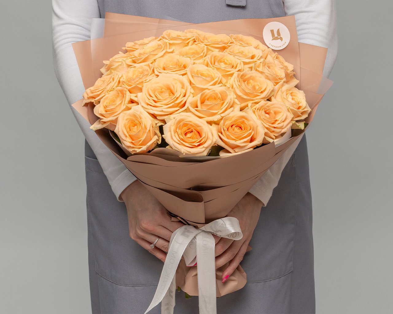 Букет из 25 кремовой розы 35-40 см (Россия) в упаковке