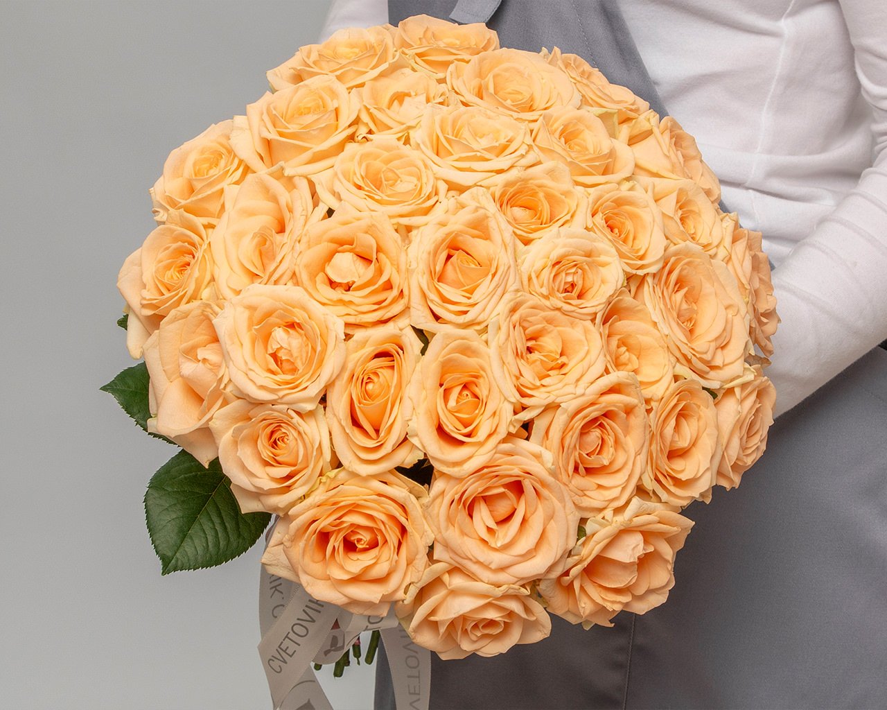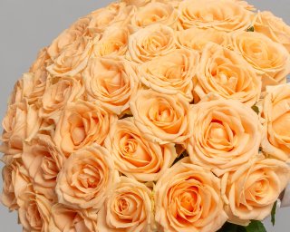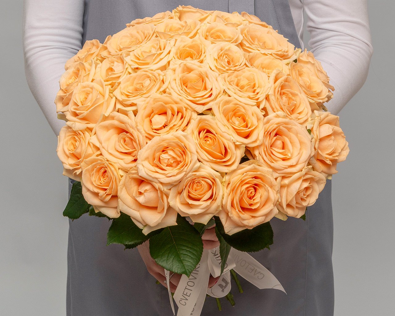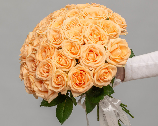 Букет из 35 кремовых роз (Россия) 35-40 см под атласную ленту