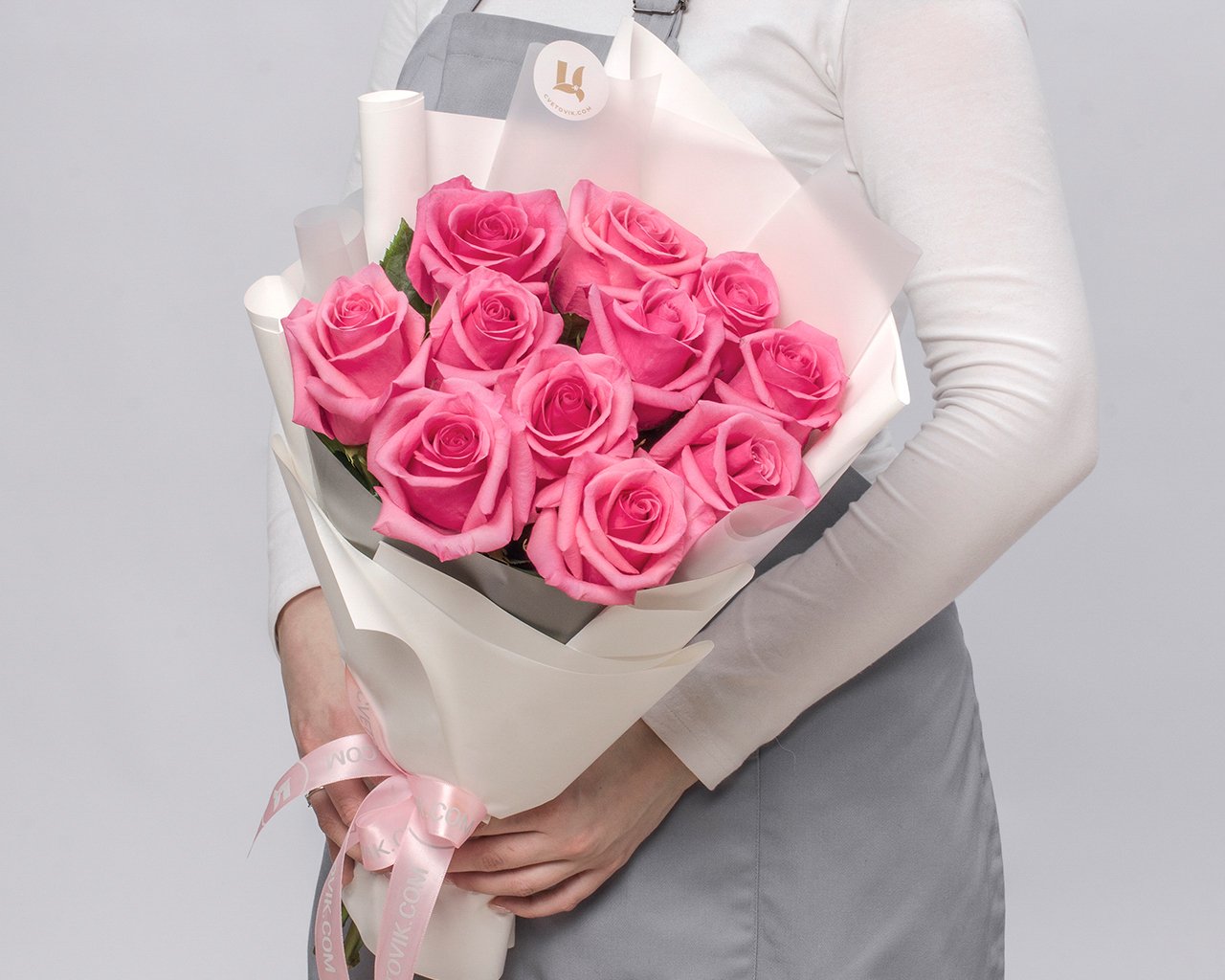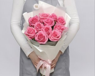 Букет из 11 розовых роз premium 40-50 см (Эквадор) в стильной упаковке