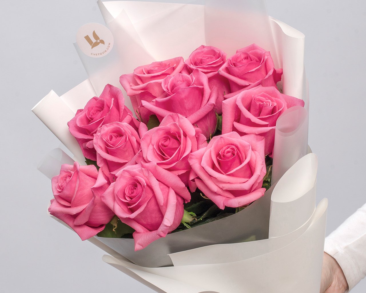 Сеть цветочных магазинов Цветовик предлагает вам букет из 11 розовых роз premium 40-50 см (эквадор) в стильной упаковке по цене 5030 рублей. Покупатели оценивают этот товар на 4.8, что свидетельствует о его качестве и популярности.