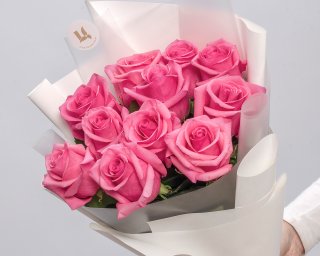 Состав: роза Эквадор 40-50 см 11 шт., пленка 1,5 шт., лента.